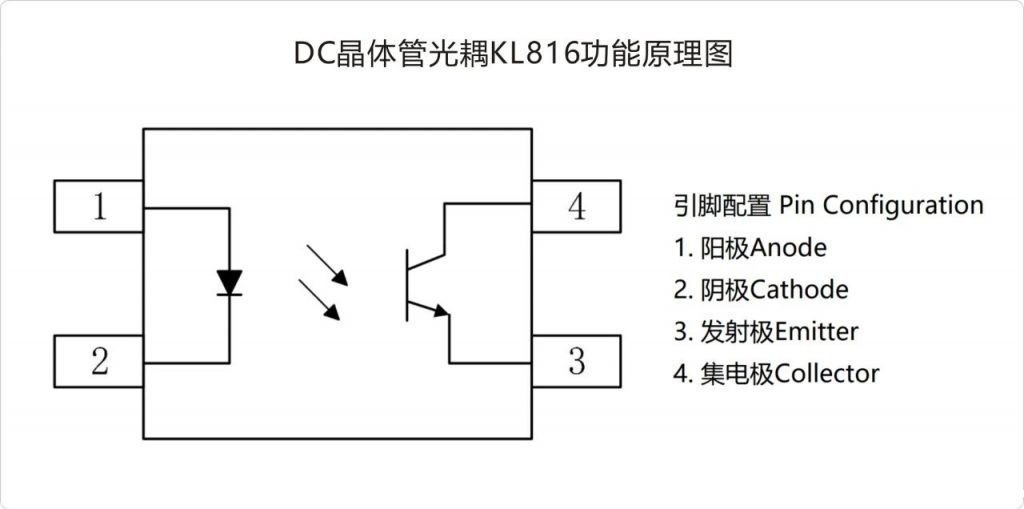 与AC型不同,DC晶体管光耦的结构相对简单。其核心为单向LED,专为直流信号处理而设计。当电流通过时,LED发光,并将光信号传输至光耦的输出端。