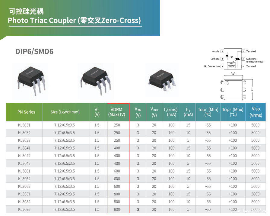 VDRM,即最大重复峰值电压,是指可控硅光耦在反向阻断状态下所能承受的最大电压。选择合适的VDRM可以防止因电压过高导致的器件击穿,从而保障电路的稳定性和安全性。