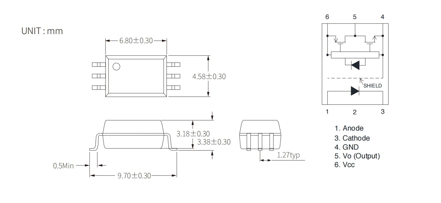 Product Package size(LxWxHmm) IFLH (Max) (mA) VCC (Min) (V) VCC (Max) (V) tPHL(ns) tPLH(ns) Output Current (A) CMR(V/us) Topr (Min) (degC) Topr (Max) (degC) Viso (Vrms)