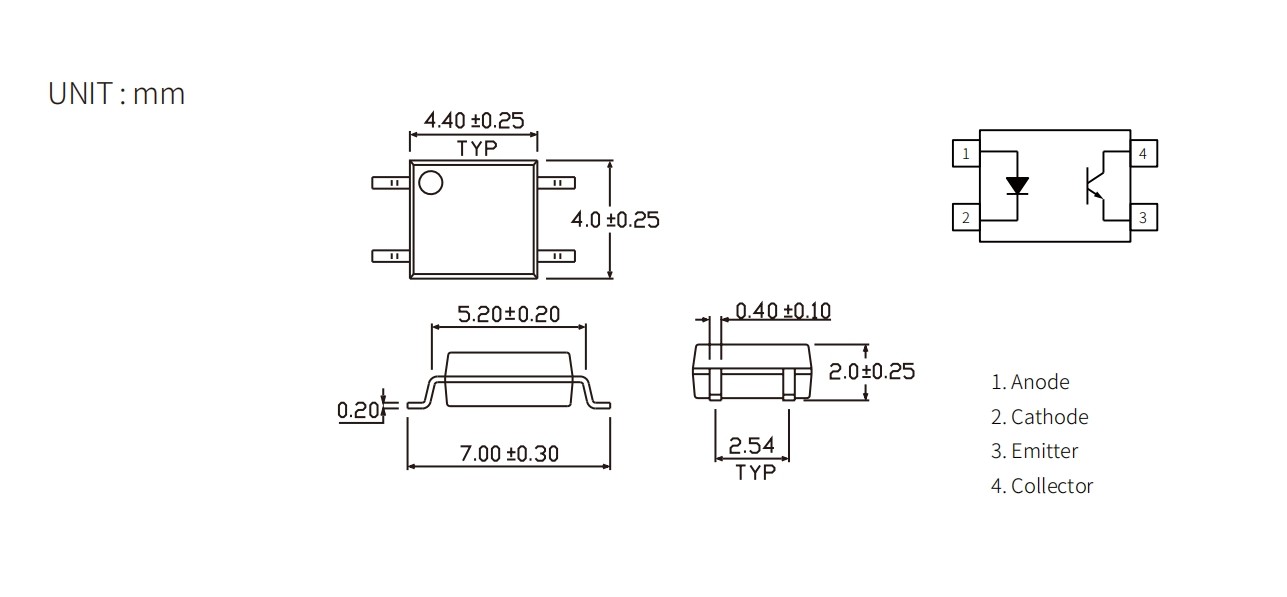 | KL357NUB | SOP4 | 4.4x4.1x2.0 | 1.3 | 60 | 0.35 | 0.5 | 150~300 | 3 | 4 | - | - | -40 | +125 | 3750 |